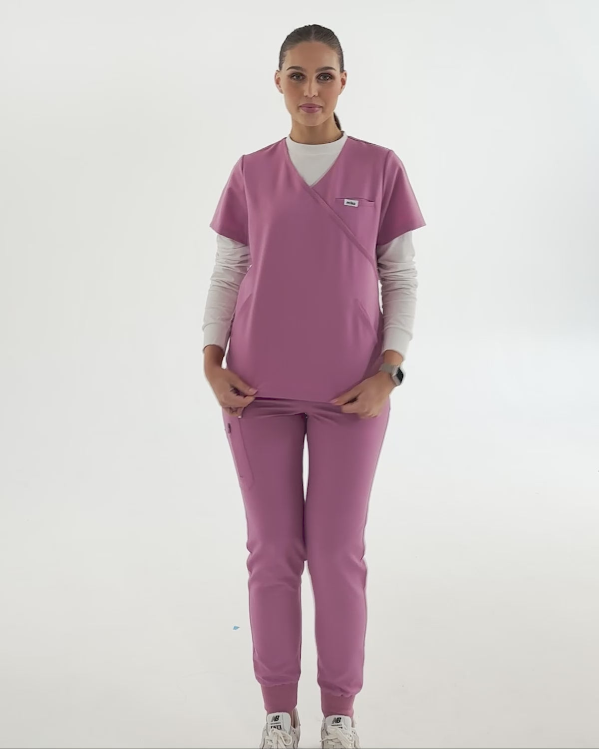 Ada V-Neck Wrap Three Pocket Scrub Top - Dusty Pink