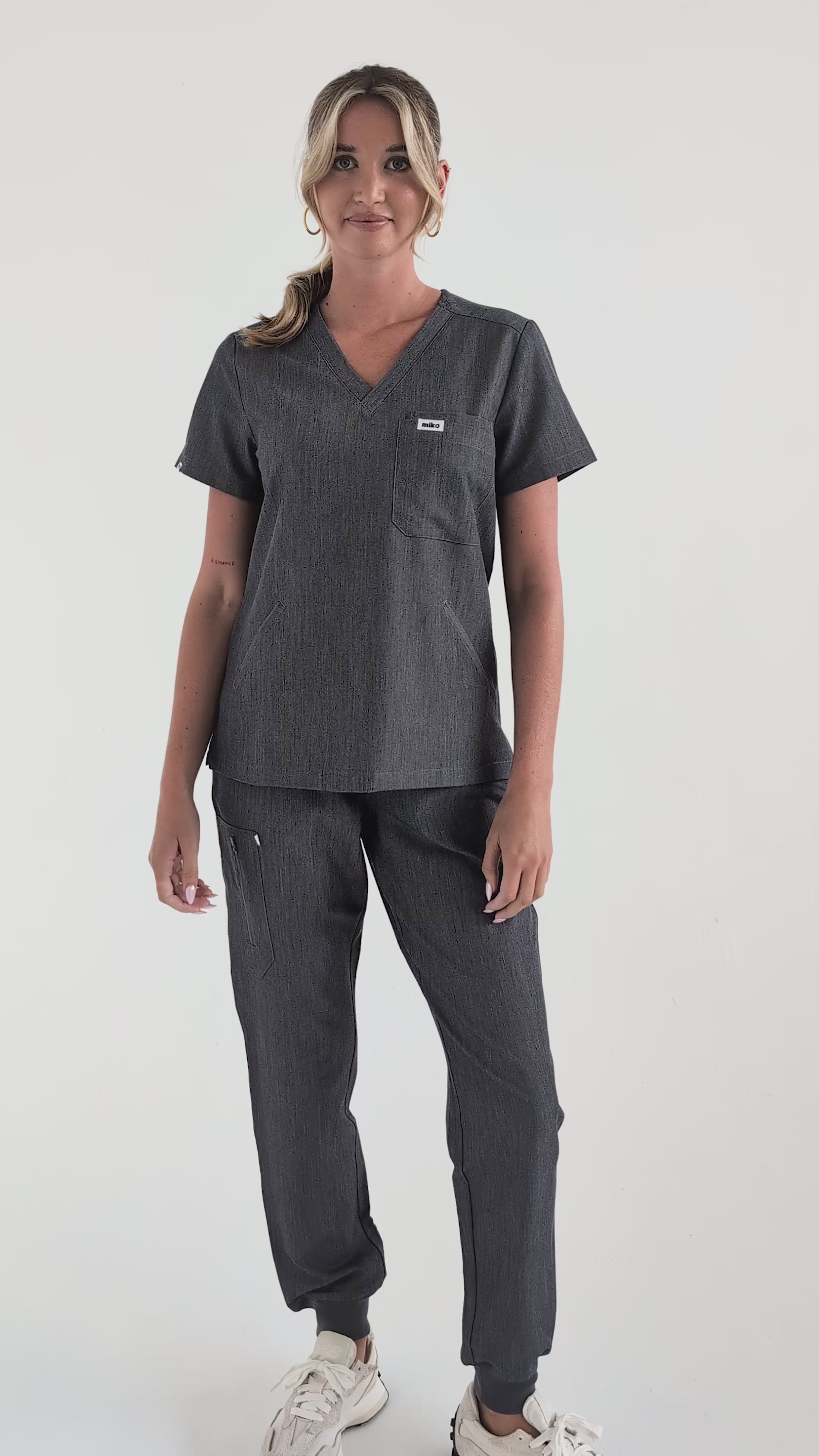 Our Everly V-Neck Scrub Top is a must have for your professional wardrobe. Featuring a simplistic yet modern tailored fit with four easy access pockets to fulfil all your stashing needs while moving with ease in our four-way stretch technical fabric for extra comfort and performance for whatever your day brings.