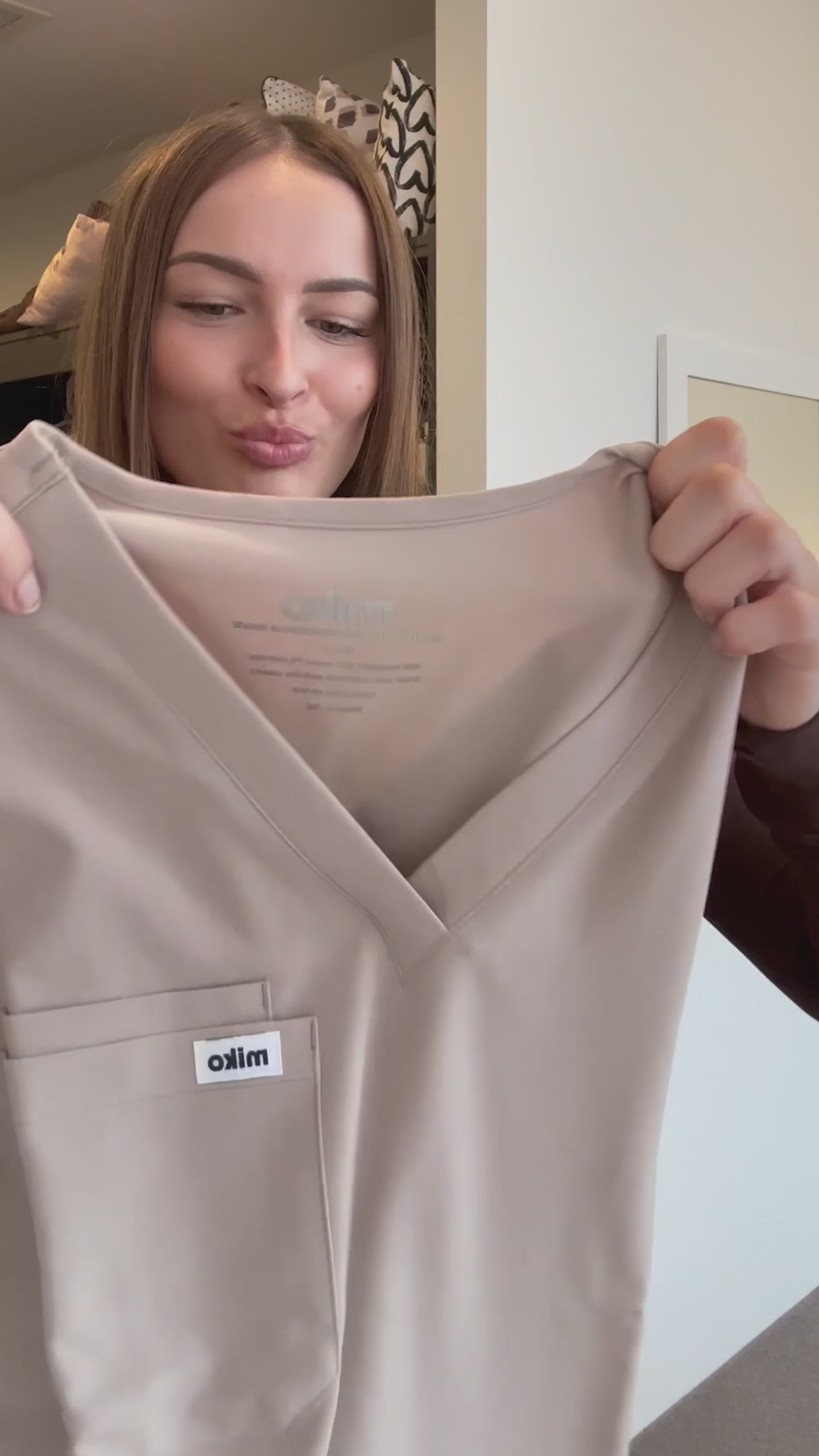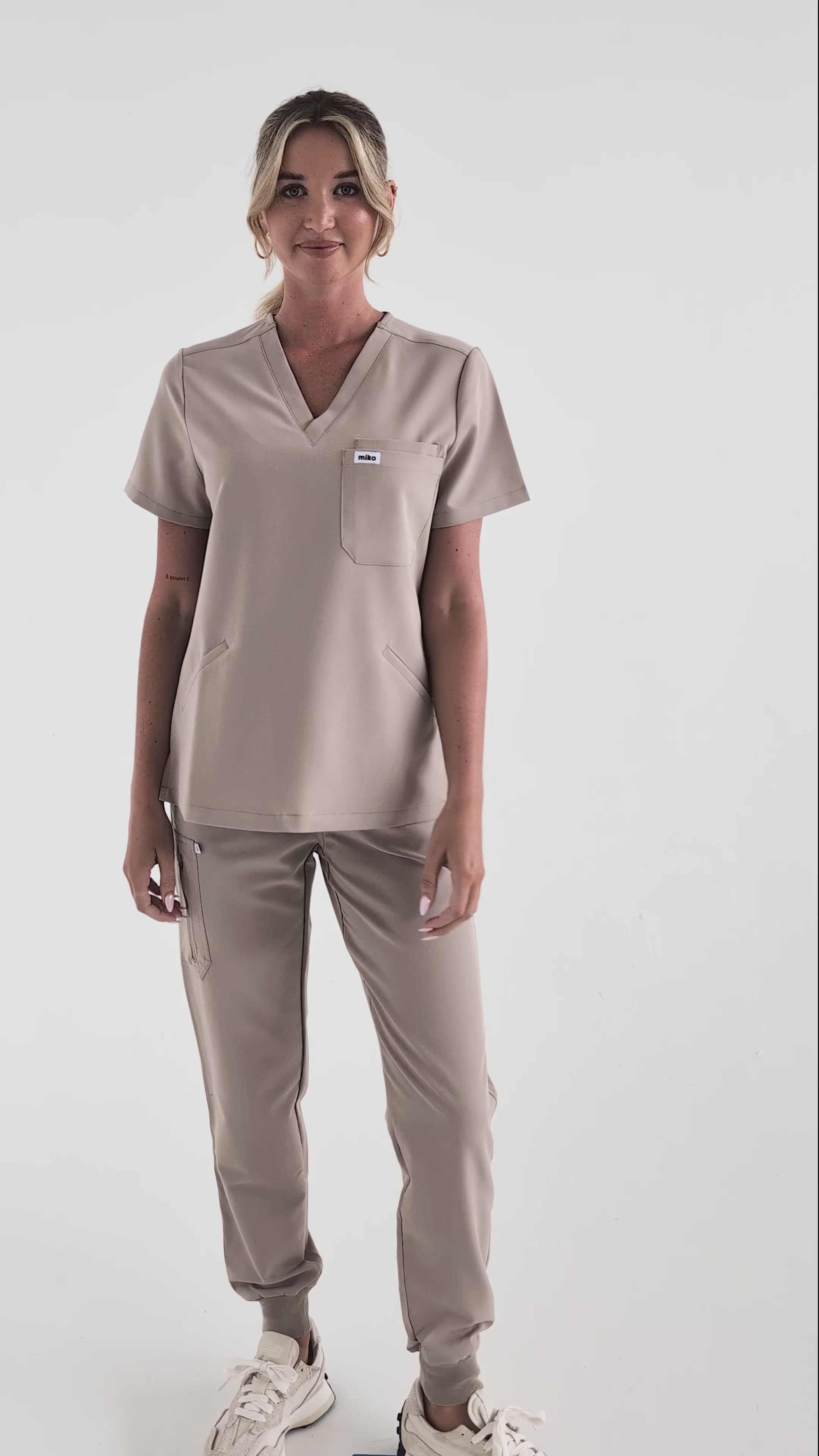 Women's Everly V-Neck Four Pocket Scrub Top - Oat | miko Skip to content