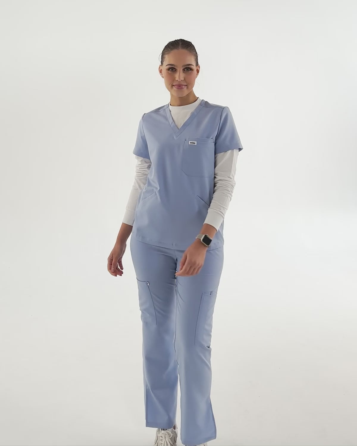 Women's Everly V-Neck Four Pocket Scrub Top - Sky Blue | miko Skip to content