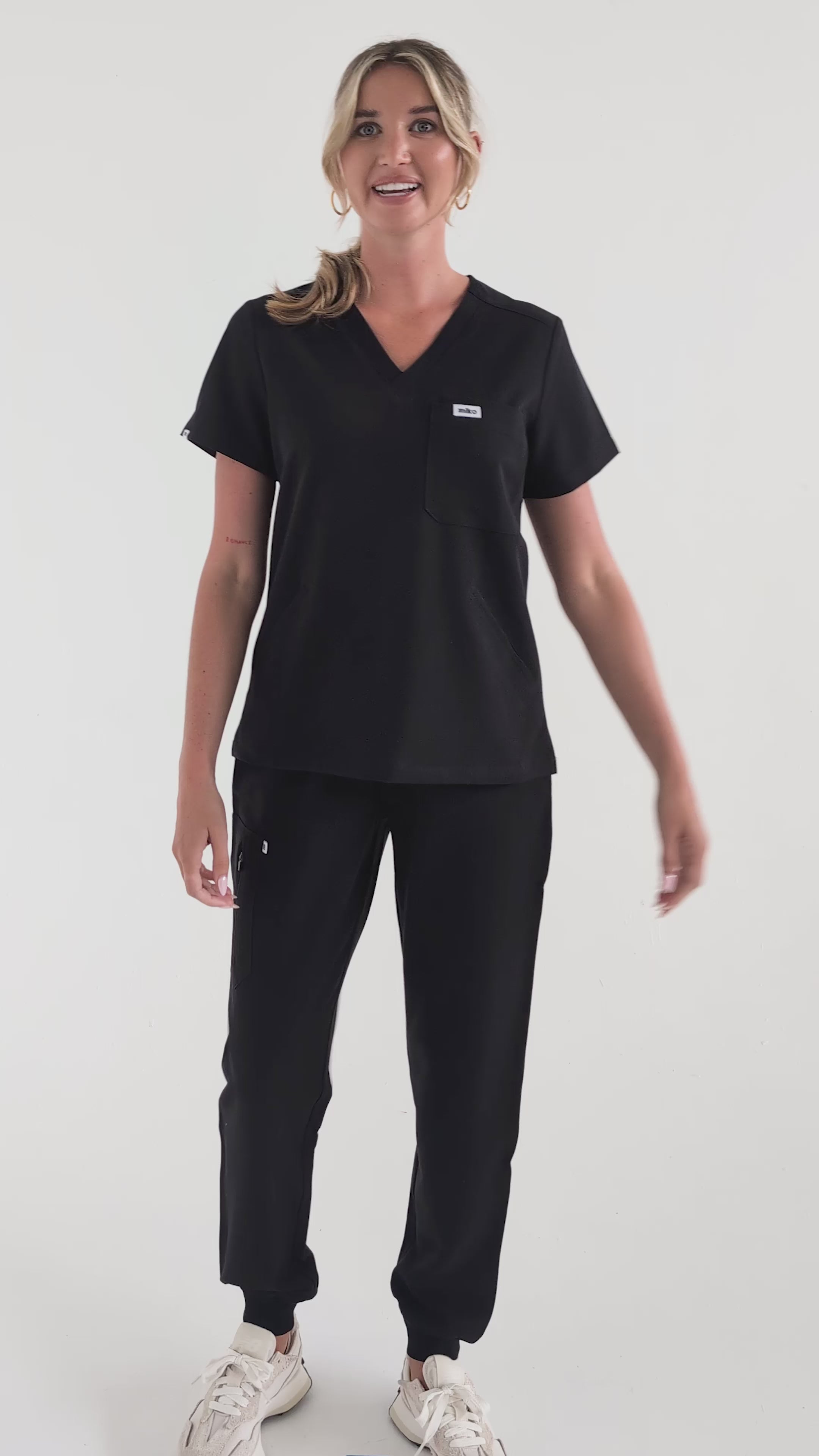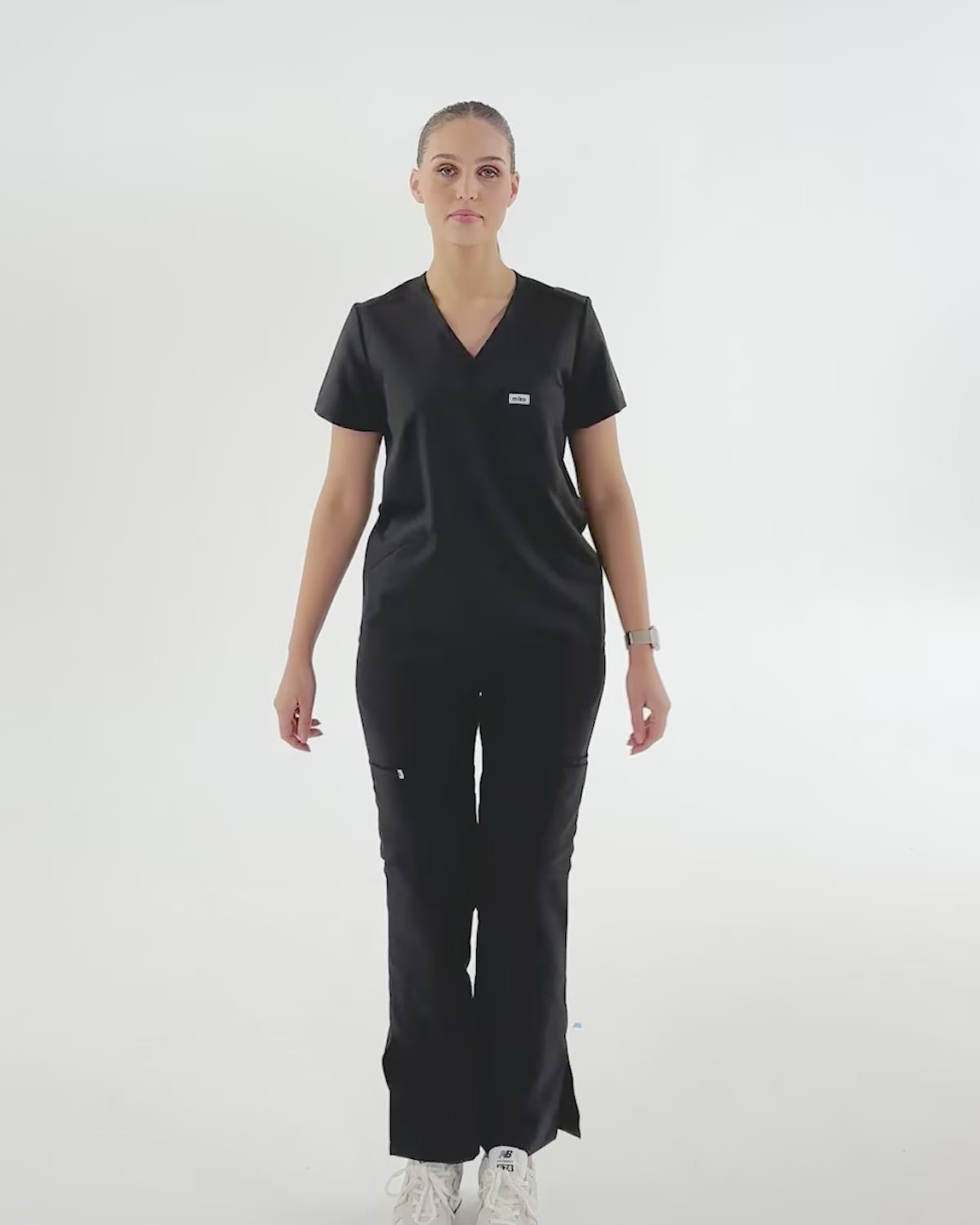Everly V-Neck Four Pocket Scrub Top V2 - Black