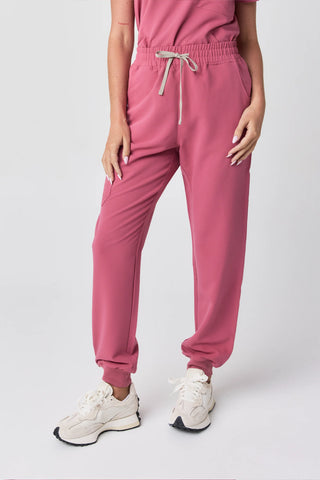 Melrose Multi-Pocket Jogger Scrub Pants - Rose Wine (Deep Pink)