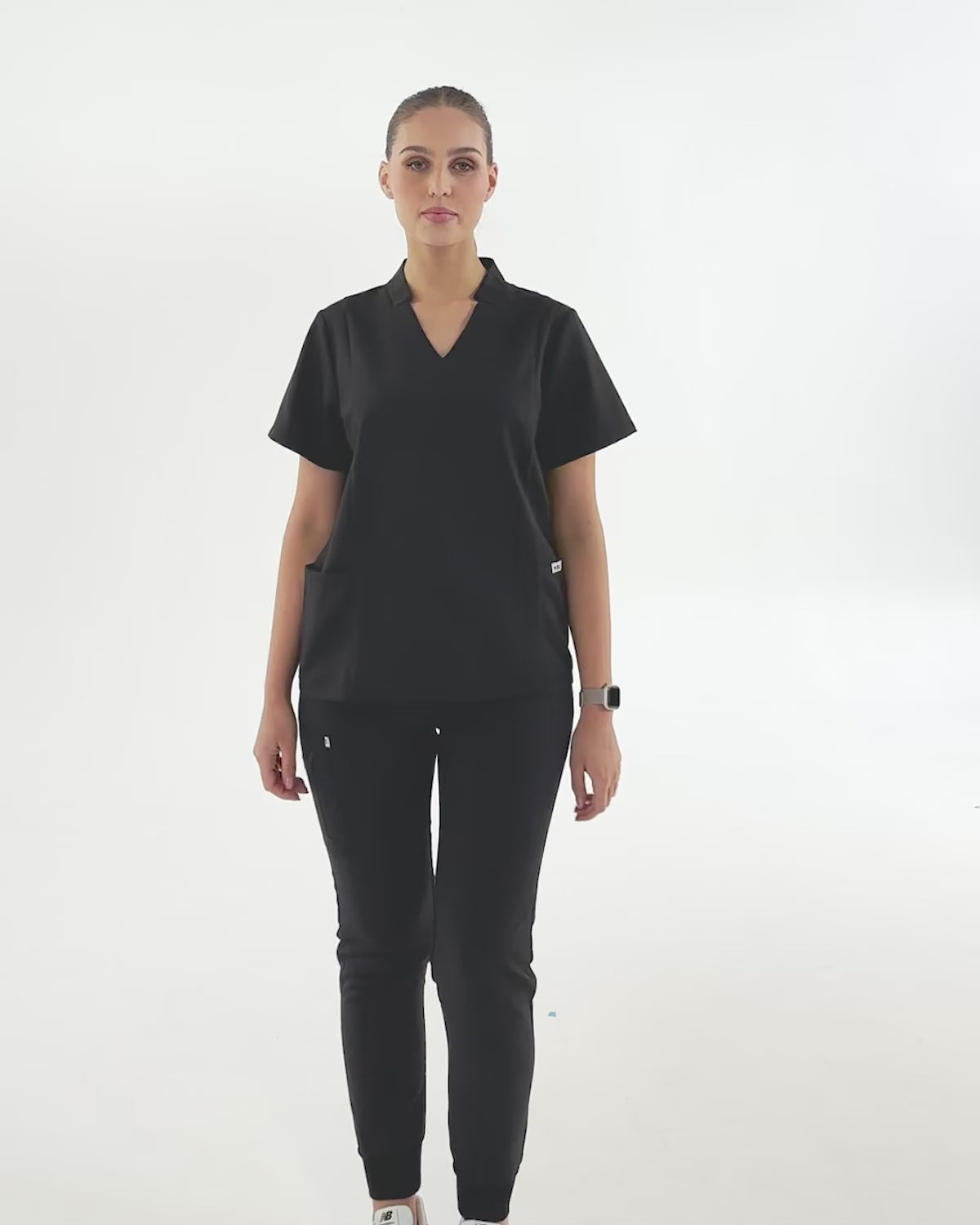 Molly Princess Cut Two Pocket Scrub Top - Black